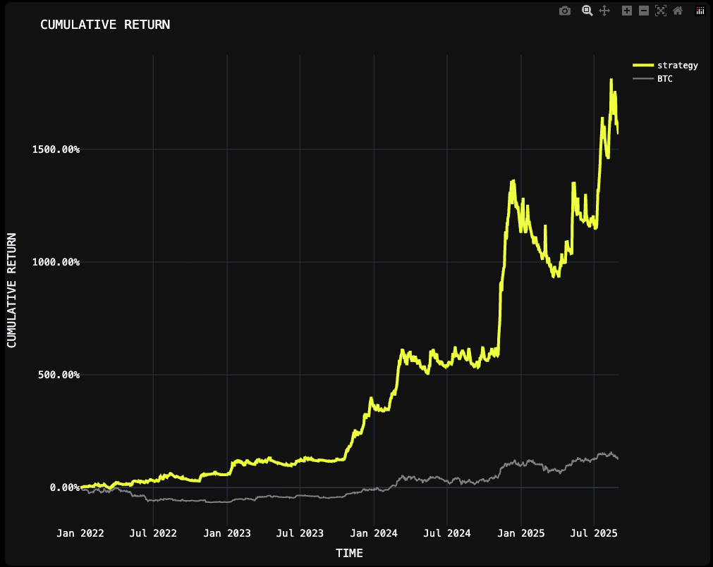 CAGR: +115% annualized vs BTC’s +25%