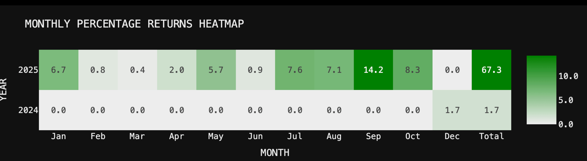 This strategy demonstrates exceptional consistency, controlled volatility, and allocator-grade risk management, producing smooth compounding with very limited drawdown stress. The return profile shows a clear ability to participate in directional expansions while avoiding the majority of adverse market cycles — resulting in a stable, upward-sloping equity curve and strong risk-adjusted efficiency.