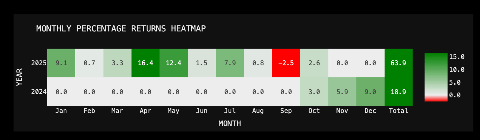 Performance in 2025 shows powerful momentum bursts during trending periods, with minimal retracements: