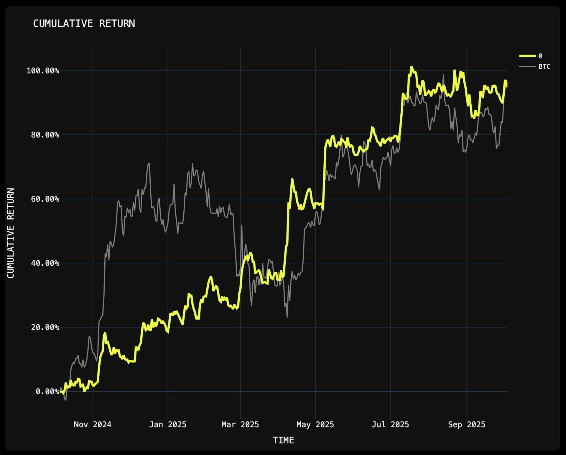 Cumulative Return: +94.8% (vs BTC +96.8%)